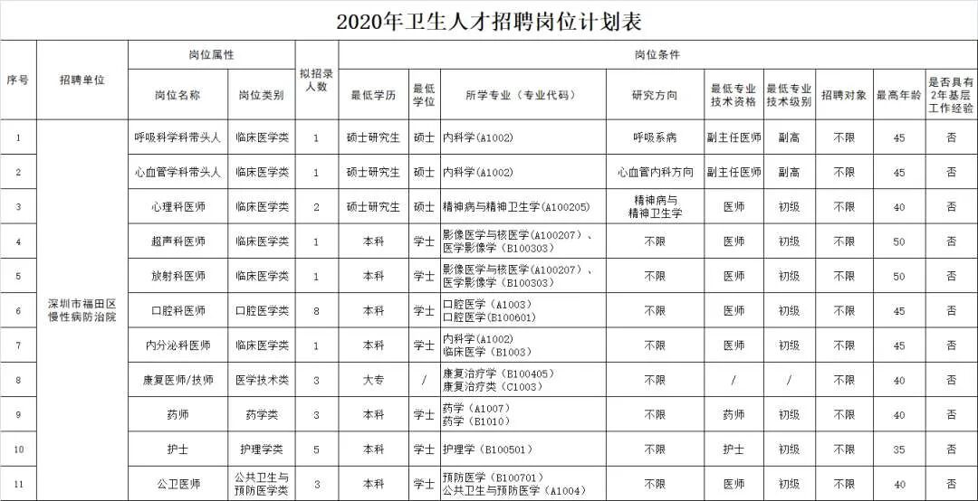 深圳市福田区慢性病防治院招聘卫生人才多名